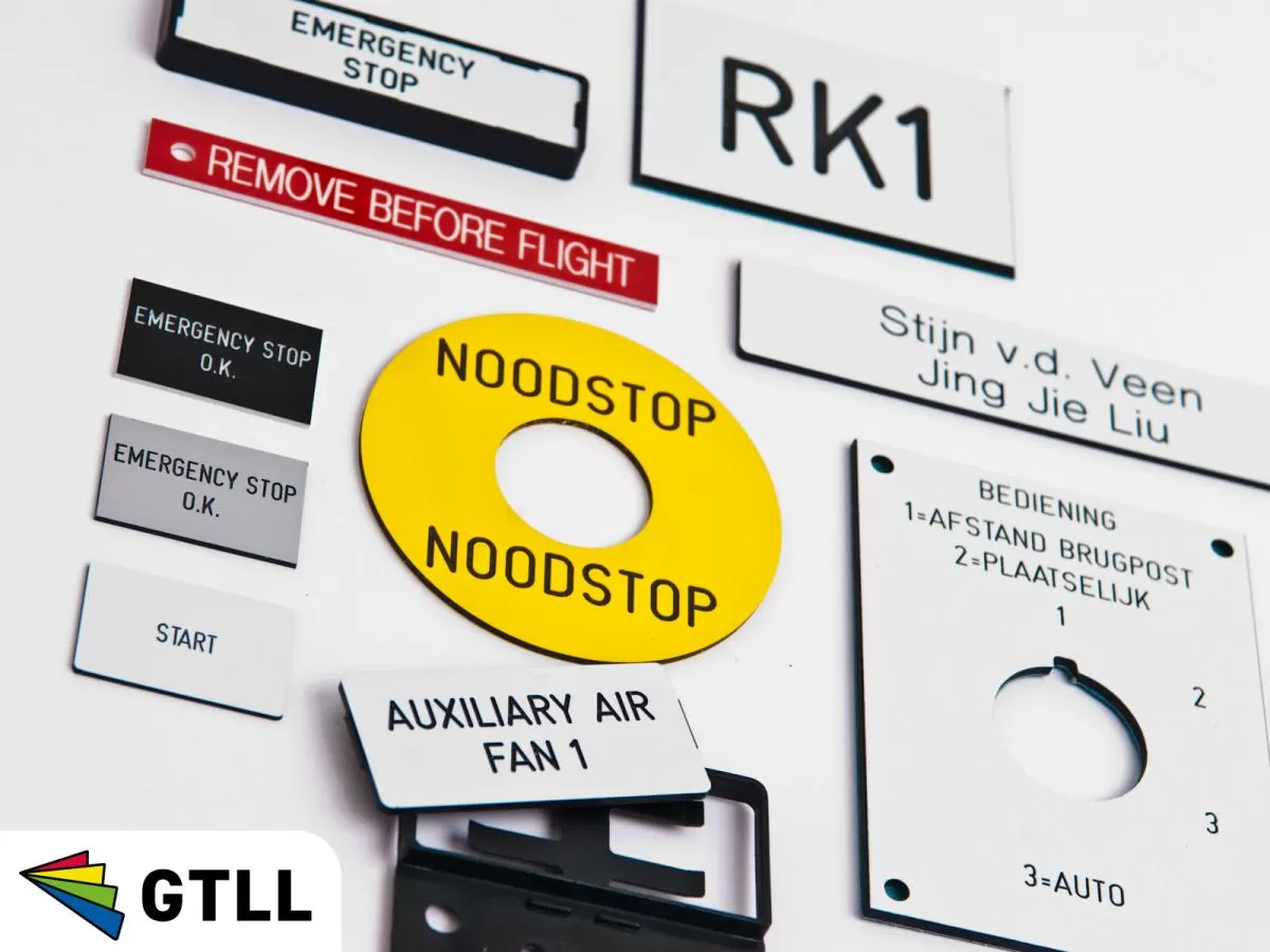 • Lasergegraveerde kunststofonderdelen of meerlagenmateriaal