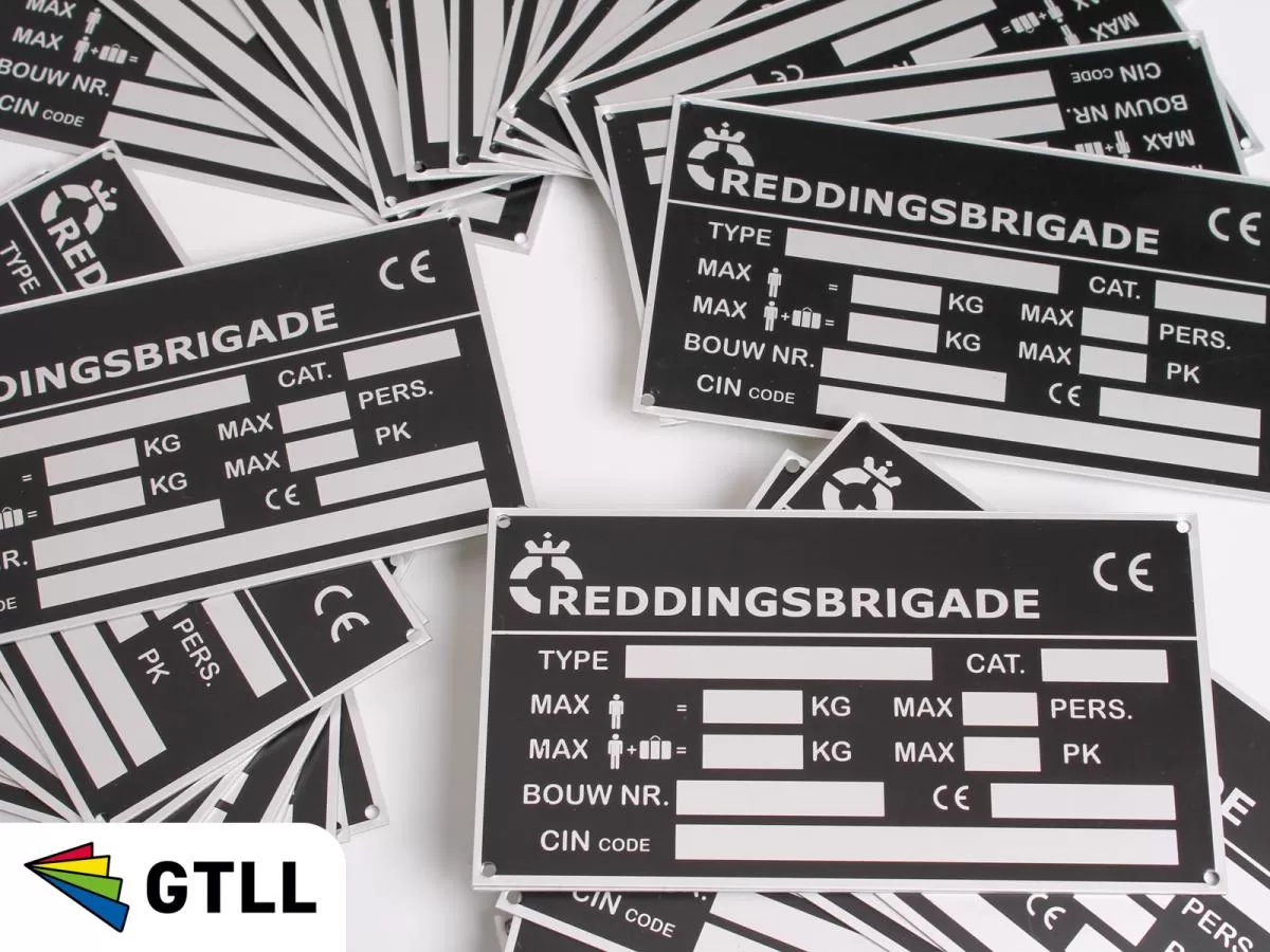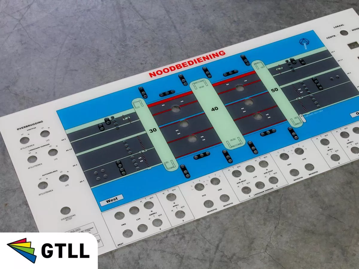 Op deze pagina tonen we een reeks praktijkvoorbeelden: denk aan gegraveerde nummers op afsluiters in een gemaal, bedrukte kunststofborden bij spoorinfrastructuur of geëtste RVS-platen bij brugbedieningskasten.