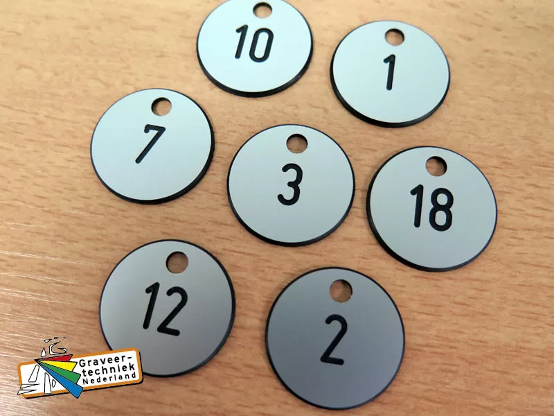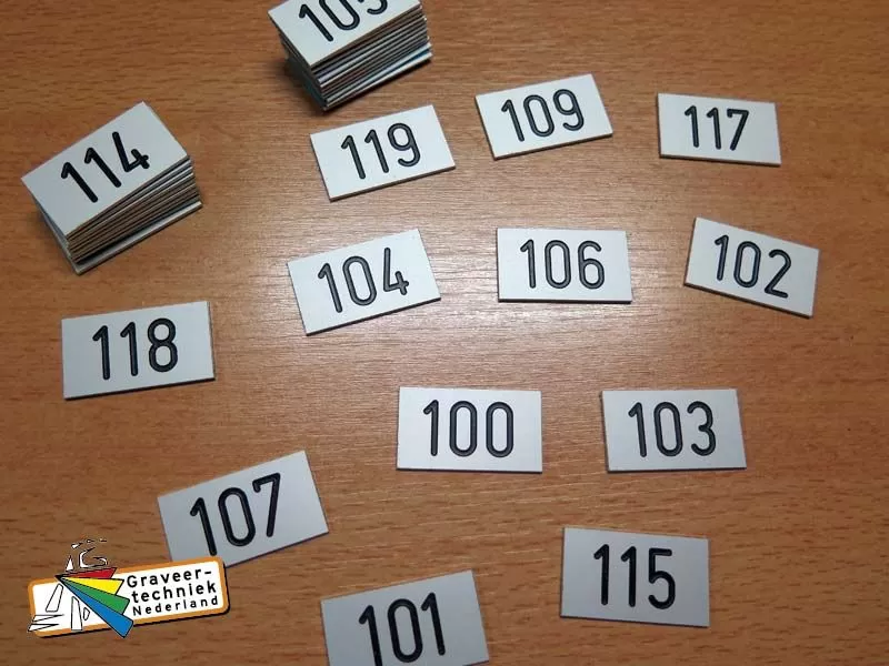 Uitvoering mogelijk in verschillende kleuren kunststof met uw eigen nummers.