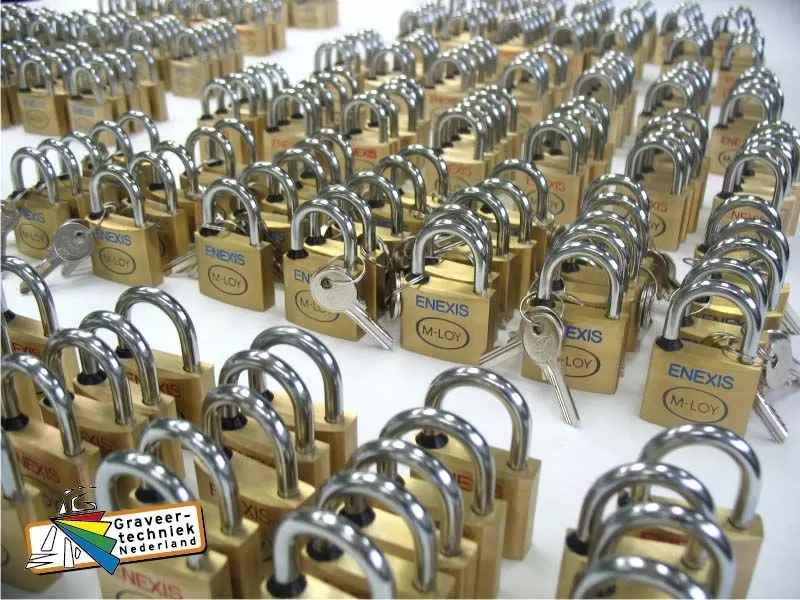 We graveren lockers, hangsloten, deurbordjes, sleutelpenningen, sleutellabels, sleutelhangers, deurhangers, maar ook maken we graveerplaatjes voor kleerhangers en garderobenummers. Van alles is mogelijk in diverse materialen en vormen.