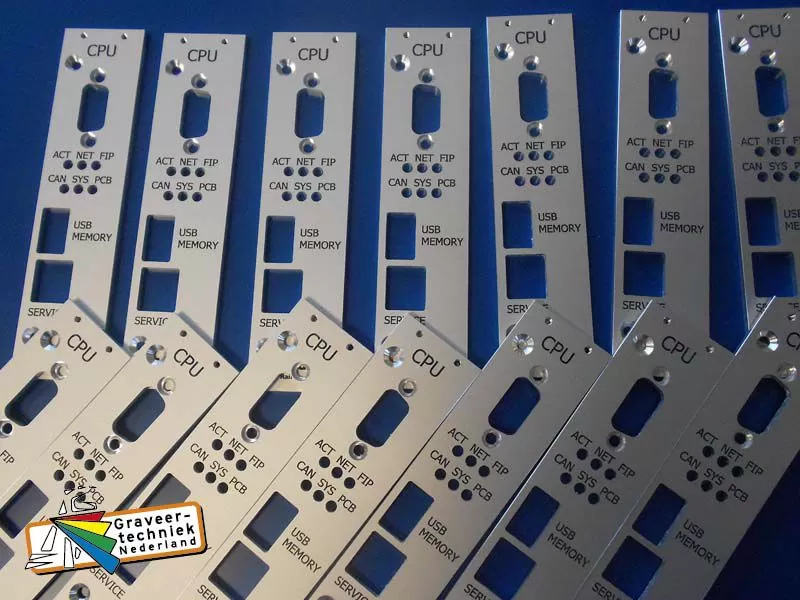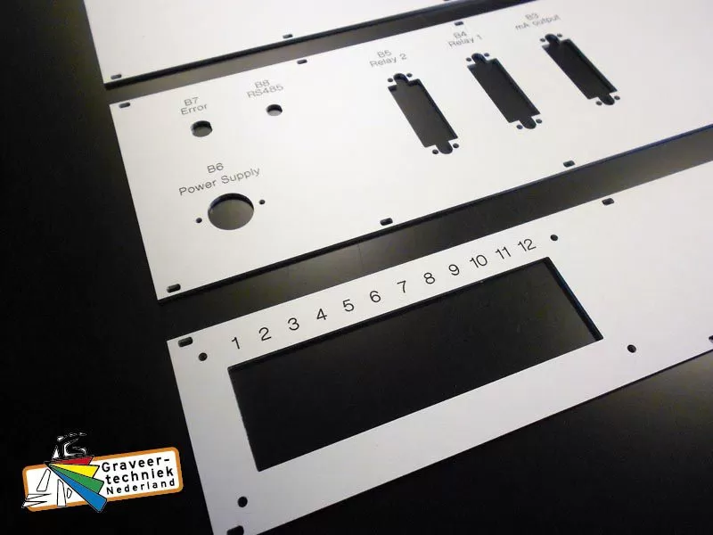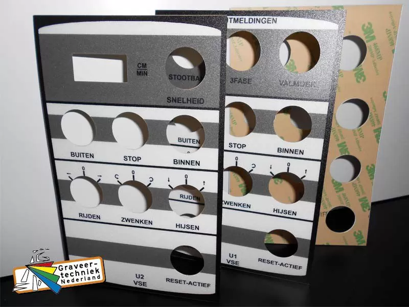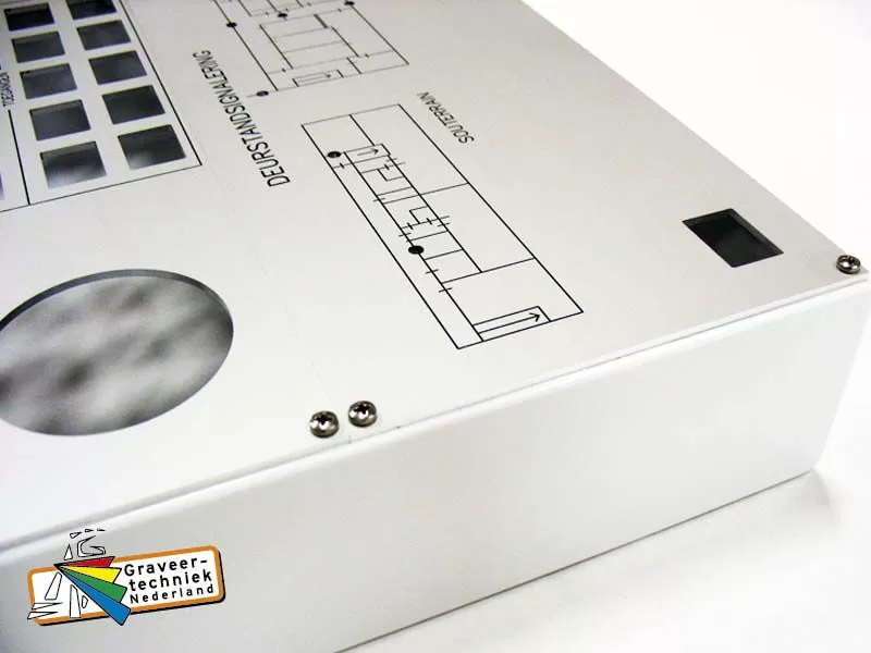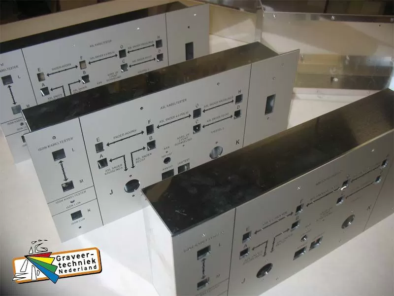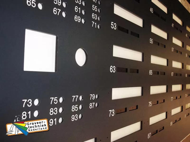 De bedieningspanelen-belpanelen van kunststof of metaal kunnen worden voorzien van tekst, gaten, logo´s, belijning en markeringen enz. door middel van graveren, zeef- en fotografisch drukken, etsen, printen of laseren. Ook het omzetten (ombuigen) is bij verschillende materialen mogelijk.