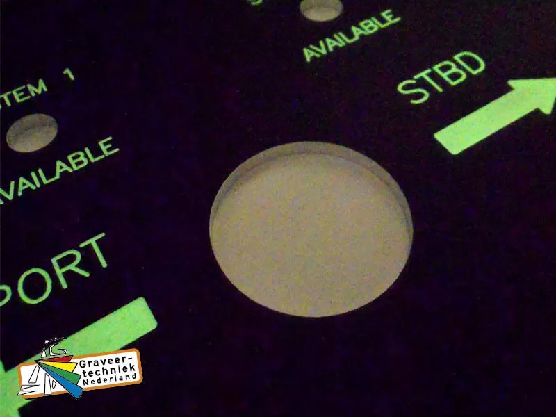 De teksten en pijlen in het paneel zal door de tagefaverf tijdelijk oplichten in het donker.