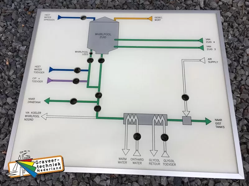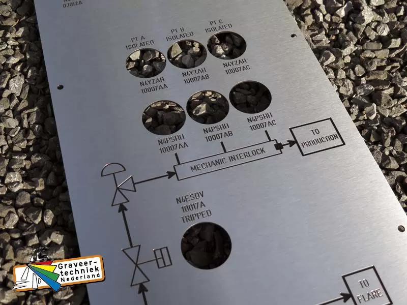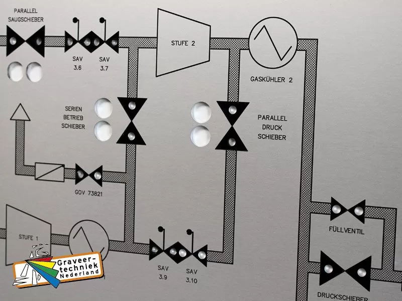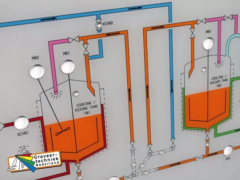 We verspanen, frezen en graveren: processchema´s, blindschema´s, beltableaus, maar ook o.a. brandmeldpanelen, verkeersschema's of brugschema's, beldrukpanelen, brievenbuspanelen, schakelpanelen frontpanelen voor schakelkasten en verdeelinrichtingen enz.