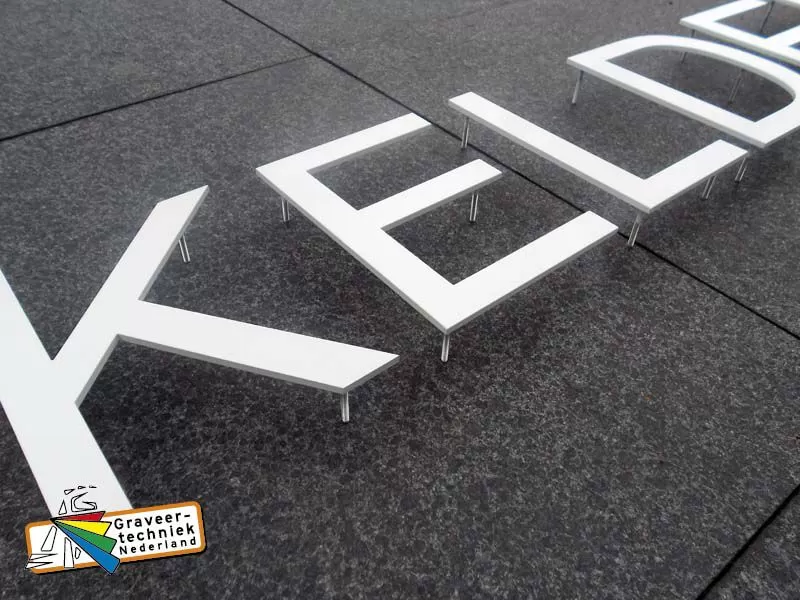 Maar de letter kan natuurlijk ook gepoedercoat in standaard kleuren.