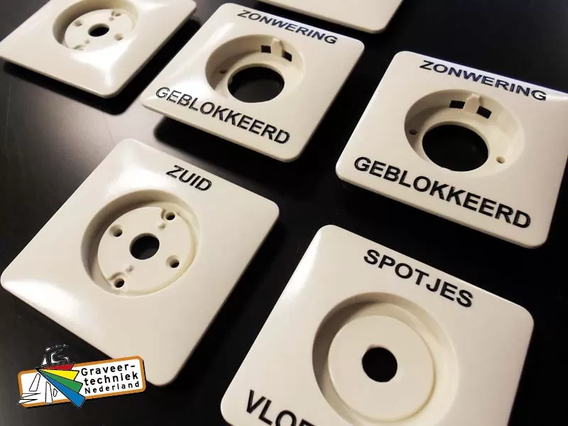 Meer voorbeelden op: Resopal en gravoply plaatjes graveren