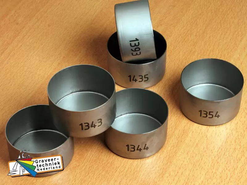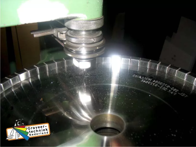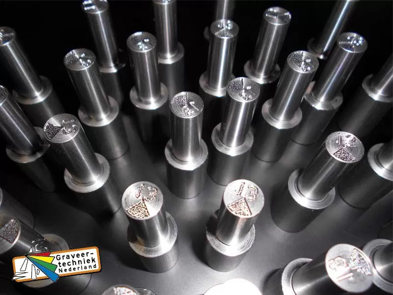 Graveren van teksten, logo's en andere vormen op verschillend gevormde oppervlakten, zoals matrijzen.