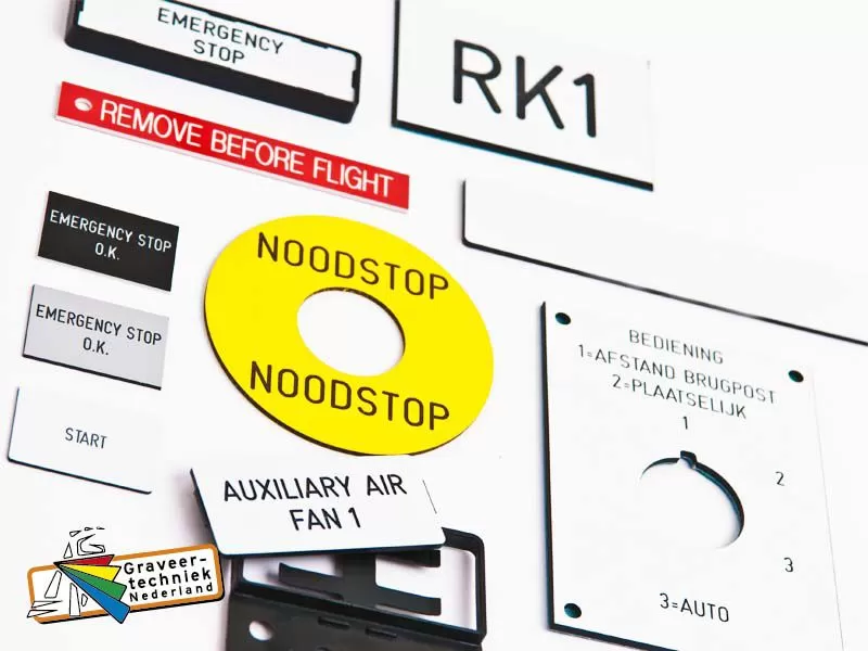 Frezen resopal en gravoply kunststof plaatjes graveren
